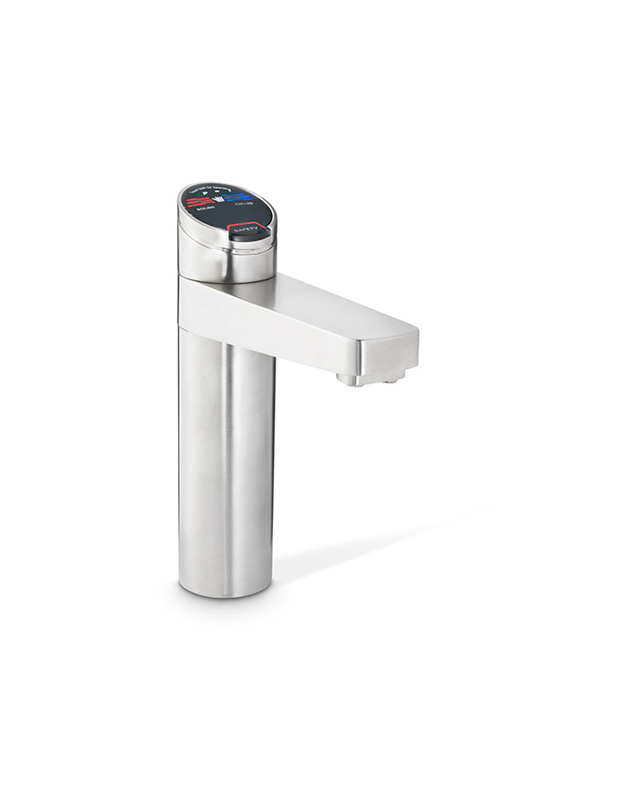 Zenith HydroTap Design Range Boiling, Ambient, Filtered water system features a single under bench command centre including full colour interactive touch screen display with pin code protection and customisable settings including boiling water safety mode, 2 energy saving modes including ON/OFF timers and 2 hour sleep mode, SteriTouch® antimicrobial protection impregnated into key water paths for enhanced hygiene, and 0.2 micron water filtration.