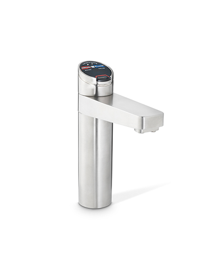Zenith HydroTap Design Range Boiling, Chilled, Sparkling, Filtered water system features a single under bench command centre including full colour interactive touch screen display with pin code protection and customisable settings including boiling water safety mode, 2 energy saving modes including ON/OFF timers and 2 hour sleep mode, 'Quiet' mode with automated intelligent fan speed adjustment, SteriTouch® antimicrobial protection impregnated into key water paths for enhanced hygiene, 100% water efficient air cooled technology, 0.2 micron water filtration, and 2 disposable CO2 cylinders.