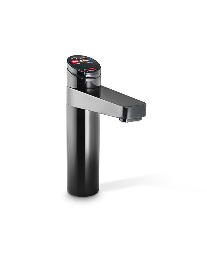 Zenith HydroTap Design Range Residential, Boiling, Chilled, Sparkling, Filtered water appliance featuring a single under bench command centre including full colour interactive touch screen display with pin code protection, boiling water safety mode, 2 energy saving modes, 0.2 micron water filtration and 2 disposable CO2 cylinders.