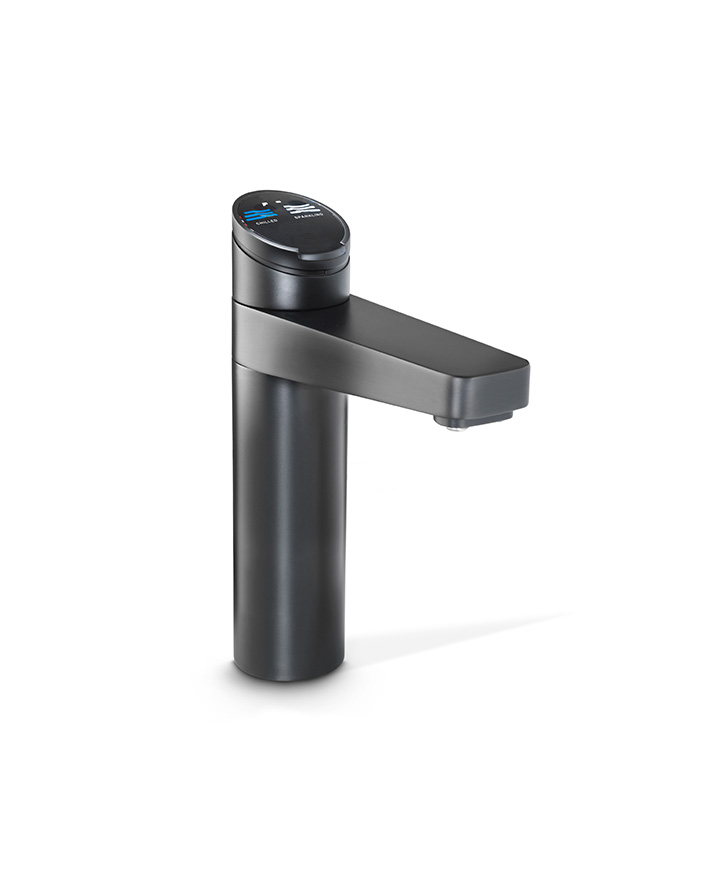Zenith HydroTap Design Range Chilled, Sparkling, Filtered water appliance featuring a single under bench command centre including full colour interactive touch screen display with pin code protection, 0.2 micron water filtration and 2 disposable CO2 cylinders.