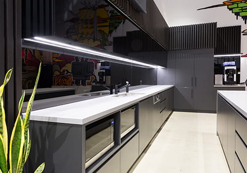 Sustainability continued through to the fixtures and fittings that were chosen, while still ensuring staff members' needs were given priority. Take the Zenith HydroTap Classic, for example, which was chosen for the staff kitchen - offering instant filtered boiling, still and sparkling water, encouraging increased water consumption and promoting healthy practices in the workplace. Constructed from raw materials and built to last with unique, innovative technology, the tap promises longevity, and an easy-to-use energy efficient solution. The contemporary and sleek design complements the rest of the office, which is a combination of industrial meets modern style.