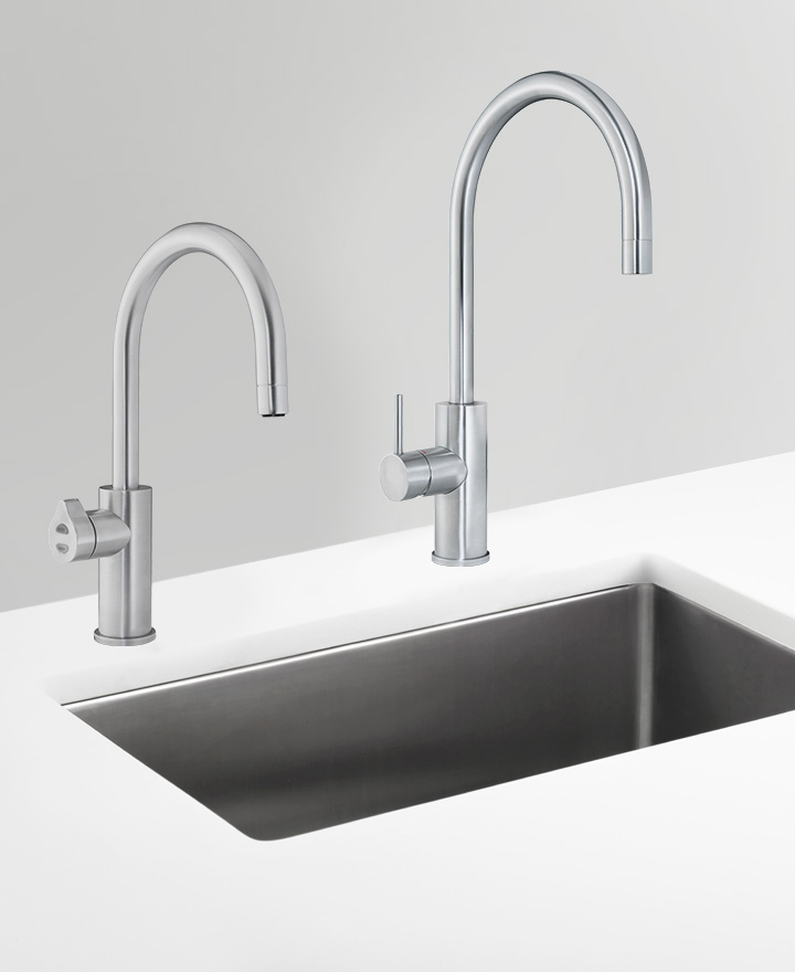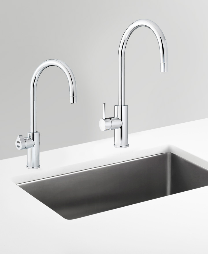 Zenith HydroTap Design Range 5 in 1 Boiling, Chilled, Sparkling, Filtered water plus Hot and Cold washing up water from two seperate taps. The appliance features a single under bench command centre including full colour interactive touch screen display with pin code protection, boiling water safety mode, 3 energy saving modes including sensor activated "sleep when its dark", 0.2 micron water filtration and a refillable CO2 cylinder.
