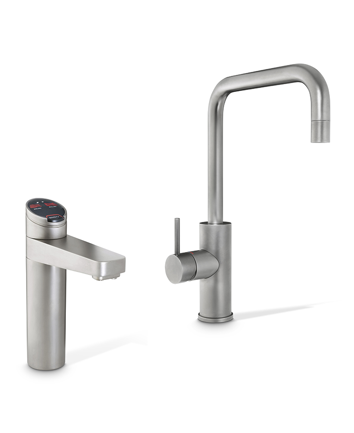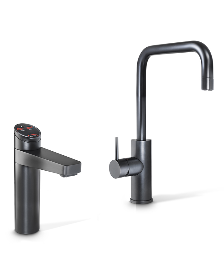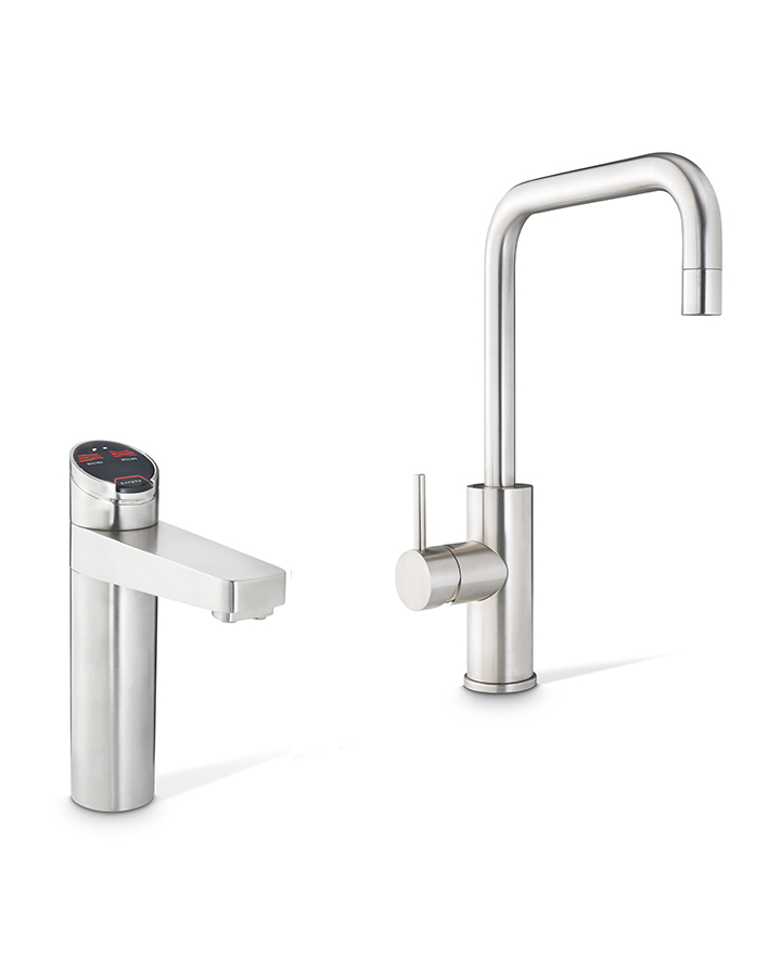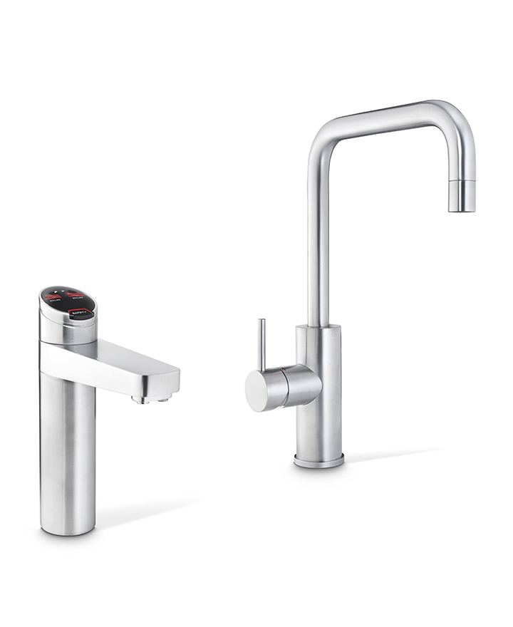 Zenith HydroTap Design Range 3 in 1 Boiling Filtered water plus Hot and Cold washing up water from two separate taps. This water system features a single under bench command centre including full colour interactive touch screen display with pin code protection and customisable settings including boiling water safety mode, 2 energy saving modes including ON/OFF timers and 2 hour sleep mode, 'Quiet' mode with automated intelligent fan speed adjustment, SteriTouch® antimicrobial protection impregnated into key water paths for enhanced hygiene, 100% water efficient air cooled technology, 0.2 micron water filtration, and 2 disposable CO2 cylinders.