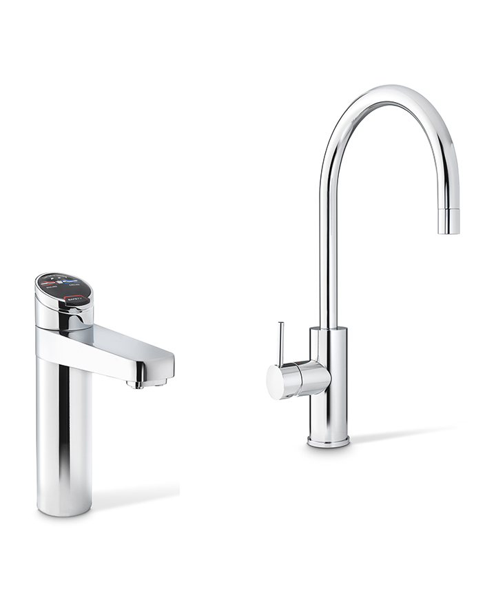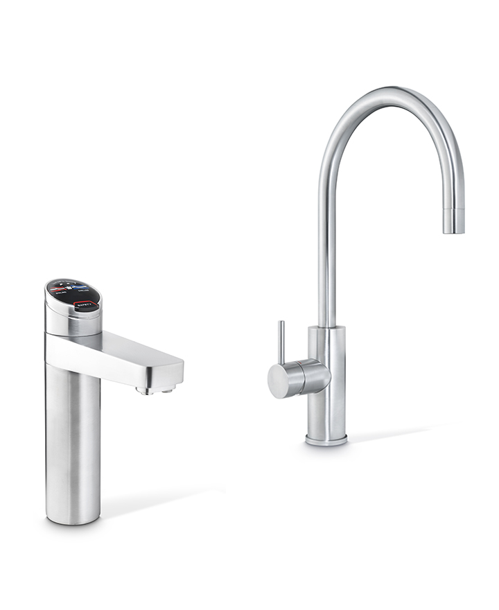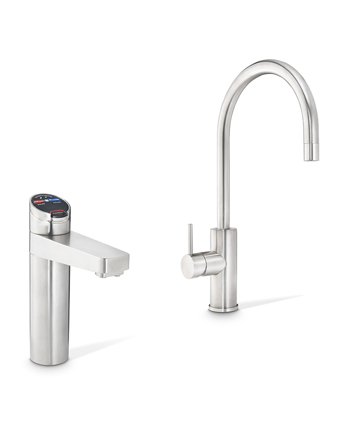 Zenith HydroTap Design Range 5 in 1 Boiling, Chilled, Sparkling, Filtered water plus Hot and Cold washing up water from two separate taps. This water system features a single under bench command centre including full colour interactive touch screen display with pin code protection and customisable settings including boiling water safety mode, 2 energy saving modes including ON/OFF timers and 2 hour sleep mode, 'Quiet' mode with automated intelligent fan speed adjustment, SteriTouch® antimicrobial protection impregnated into key water paths for enhanced hygiene, 100% water efficient air cooled technology, 0.2 micron water filtration, and 2 disposable CO2 cylinders. Easy to install integrated ventilation tray included.