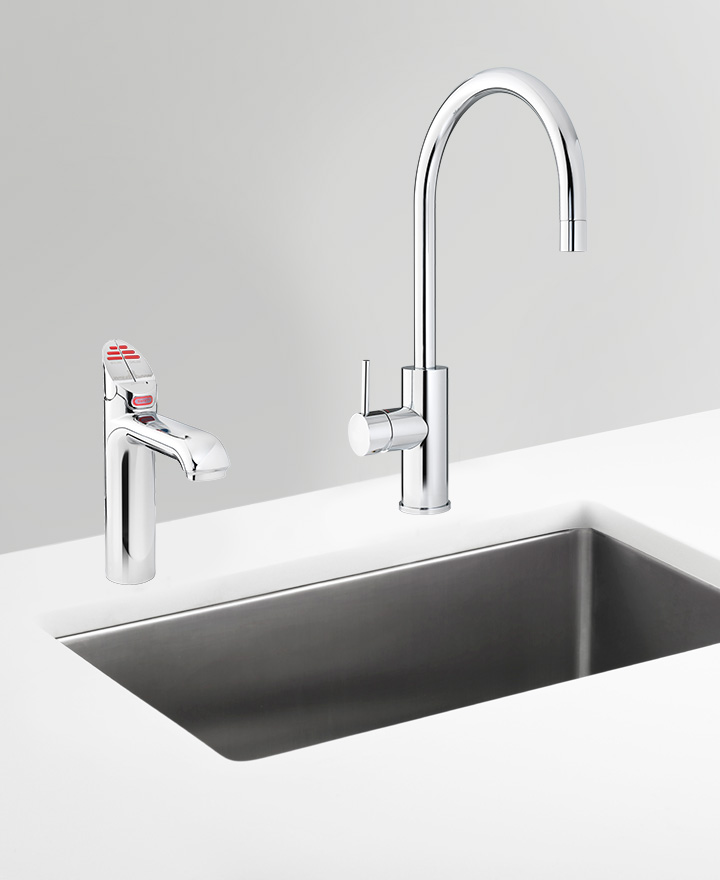 Zenith HydroTap 3 in 1 Boiling Filtered drinking water plus Hot and Cold washing up water from two seperate taps. The appliance features a single under bench command centre including full colour interactive touch screen display with pin code protection, 2 boiling water safety modes, 3 energy saving modes including sensor activated "sleep when its dark" and 0.2 micron water filtration.