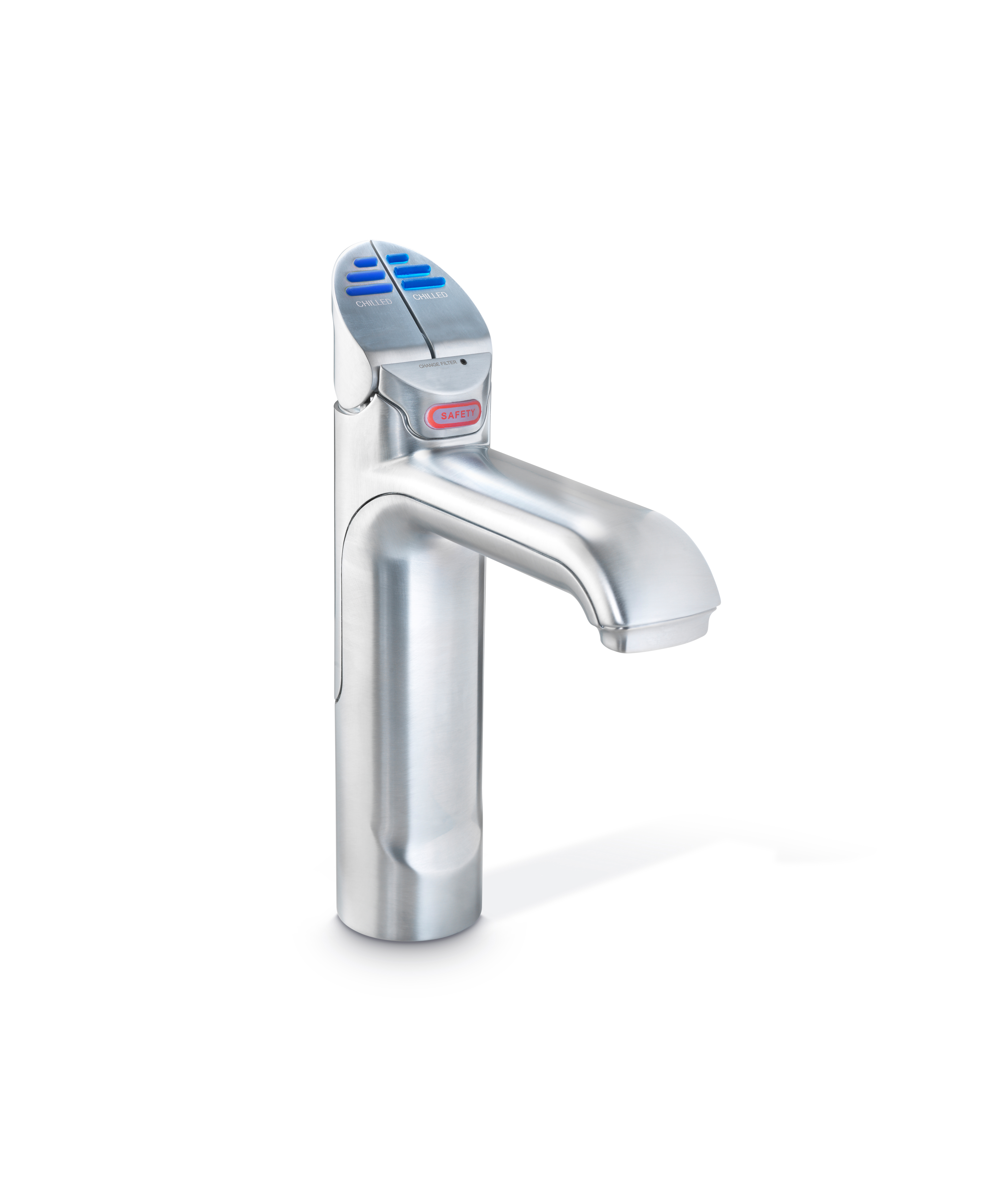 Zenith HydroTap Chilled, Filtered water appliance featuring a single under bench command centre including full colour interactive touch screen display with pin code protection and 0.2 micron water filtration.