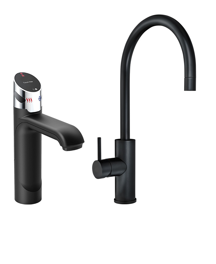 Zenith HydroTap Touch-Free Wave 4 in 1 Boiling, Chilled, Filtered water plus Hot and Cold washing up water from two separate taps. The system uses smart infrared 100% touch-free operation that is activated with the Wave of a hand. The water system features a single under bench command centre including full colour interactive touch screen display with pin code protection and customisable settings including boiling water safety mode, 2 energy saving modes including ON/OFF timers and 2 hour sleep mode, 'Quiet' mode with automated intelligent fan speed adjustment, antimicrobial protection impregnated into key water paths for enhanced hygiene, 100% water efficient air cooled technology and 0.2 micron water filtration. Easy to install integrated ventilation tray included.