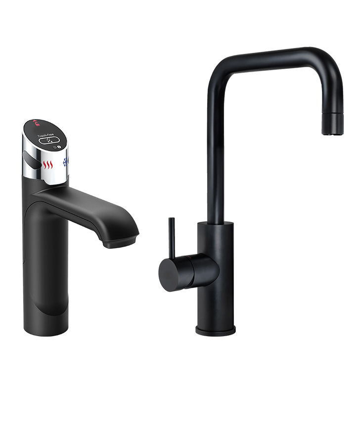 Zenith HydroTap Touch-Free Wave 5 in 1 Boiling, Chilled, Sparkling, Filtered water plus Hot and Cold washing up water from two separate taps. The system uses smart infrared 100% touch-free operation that is activated with the Wave of a hand. The water system features a single under bench command centre including full colour interactive touch screen display with pin code protection and customisable settings including boiling water safety mode, 2 energy saving modes including ON/OFF timers and 2 hour sleep mode, 'Quiet' mode with automated intelligent fan speed adjustment, antimicrobial protection impregnated into key water paths for enhanced hygiene, 100% water efficient air cooled technology, 0.2 micron water filtration, and a refillable CO2 cylinder. Easy to install integrated ventilation tray included.