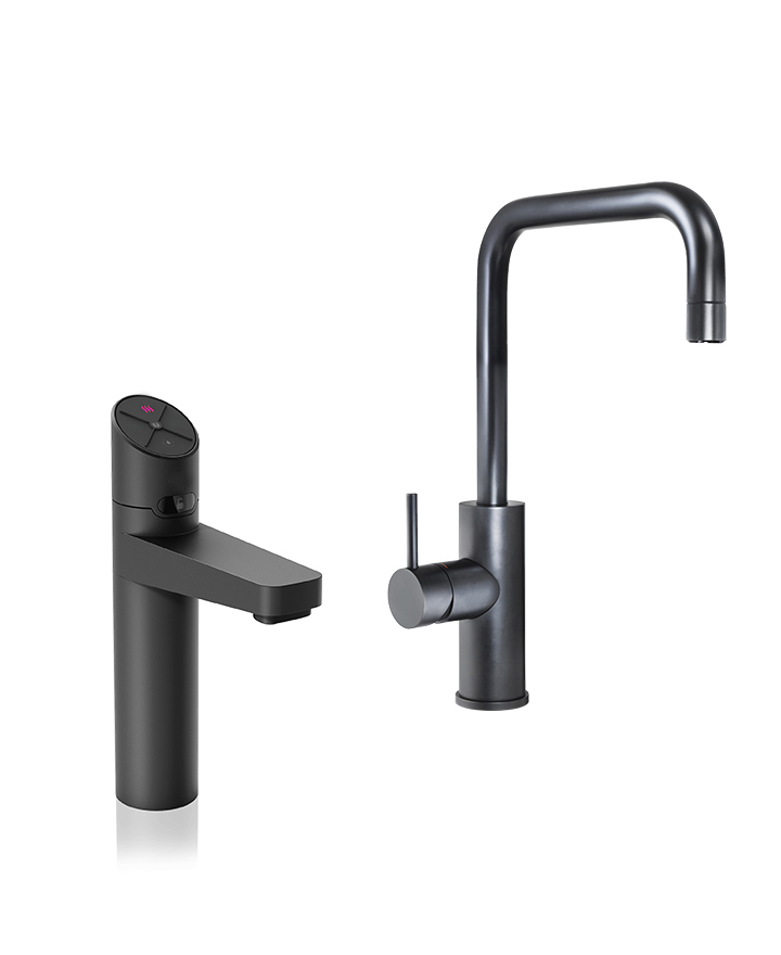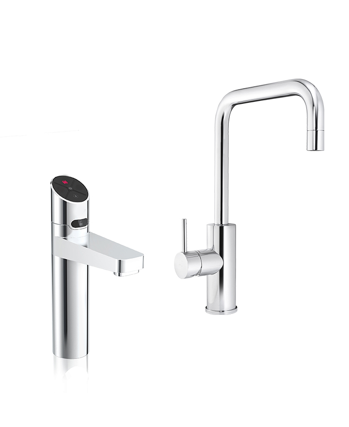 Zenith HydroTap Design Range 3 in 1 Boiling Filtered water plus Hot and Cold washing up water from two separate taps. This water system features a single under bench command centre including full colour interactive touch screen display with pin code protection and customisable settings including boiling water safety mode, 2 energy saving modes including ON/OFF timers and 2 hour sleep mode, 'Quiet' mode with automated intelligent fan speed adjustment, antimicrobial protection impregnated into key water paths for enhanced hygiene, 100% water efficient air cooled technology, 0.2 micron water filtration, and 2 disposable CO2 cylinders.