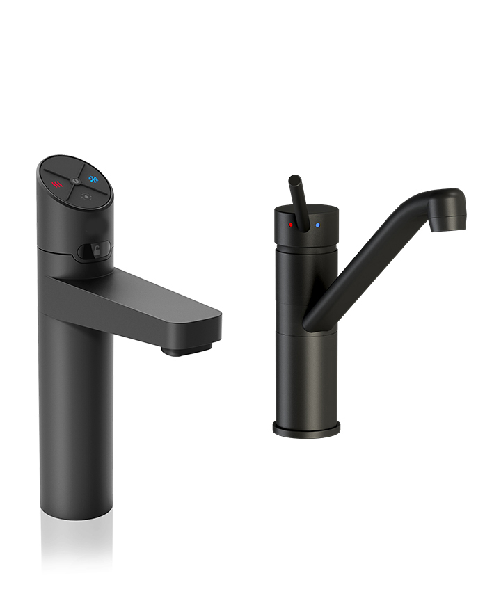 Zenith HydroTap Design Range 4 in 1 Boiling, Chilled, Filtered water plus Hot and Cold washing up water from two separate taps. This water system features a single under bench command centre including full colour interactive touch screen display with pin code protection and customisable settings including boiling water safety mode, 2 energy saving modes including ON/OFF timers and 2 hour sleep mode, 'Quiet' mode with automated intelligent fan speed adjustment, antimicrobial protection impregnated into key water paths for enhanced hygiene, 100% water efficient air cooled technology, 0.2 micron water filtration, and 2 disposable CO2 cylinders. Easy to install integrated ventilation tray included.