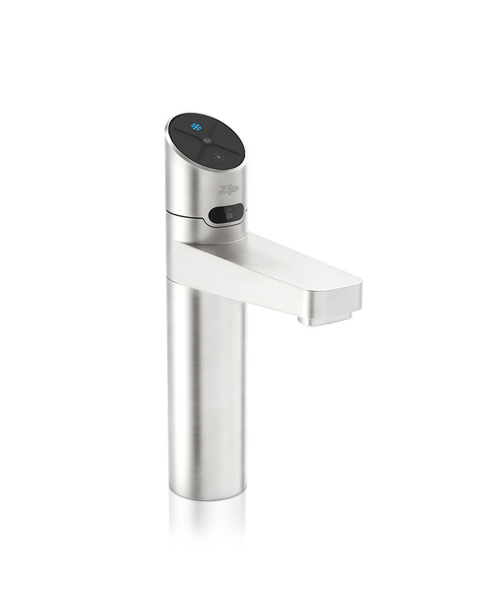 Zenith HydroTap Design Range Chilled, Filtered water system features a single under bench command centre including full colour interactive touch screen display with pin code protection and customisable settings including 2 energy saving modes including ON/OFF timers and 2 hour sleep mode, 'Quiet' mode with automated intelligent fan speed adjustment, antimicrobial protection impregnated into key water paths for enhanced hygiene, 100% water efficient air cooled technology, and 0.2 micron water filtration. Easy to install integrated ventilation tray included.