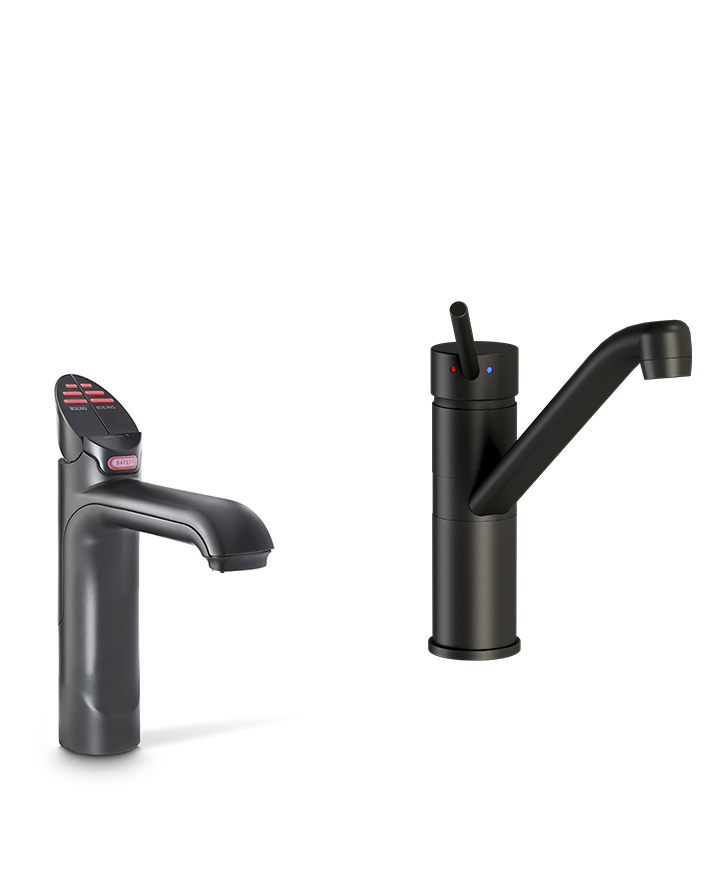 Zenith HydroTap Classic 3 in 1 Boiling, Filtered water plus Hot and Cold washing up water from two separate taps. The system features a single under bench command centre including full colour interactive touch screen display with pin code protection and customisable settings including 2 boiling water safety modes, 3 energy saving modes including ON/OFF timers and sensor activated 'sleep when it's dark', 'Quiet' mode with automated intelligent fan speed adjustment, antimicrobial protection impregnated into key water paths for enhanced hygiene, 100% water efficient air cooled technology, and 0.2 micron water filtration.