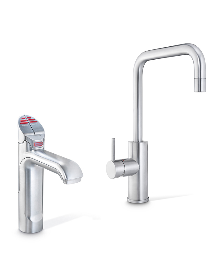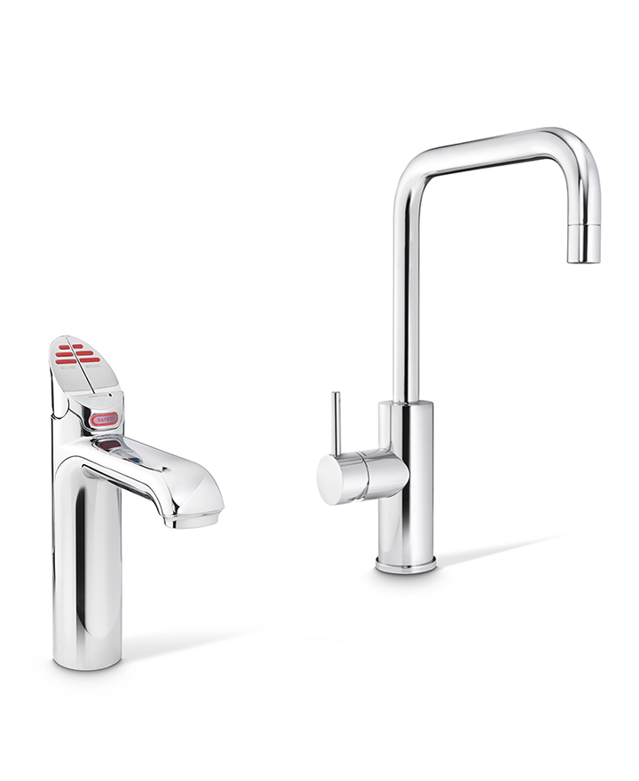 Zenith HydroTap Classic 3 in 1 Boiling, Filtered water plus Hot and Cold washing up water from two separate taps. The system features a single under bench command centre including full colour interactive touch screen display with pin code protection and customisable settings including 2 boiling water safety modes, 3 energy saving modes including ON/OFF timers and sensor activated 'sleep when it's dark', 'Quiet' mode with automated intelligent fan speed adjustment, antimicrobial protection impregnated into key water paths for enhanced hygiene, 100% water efficient air cooled technology, and 0.2 micron water filtration.
