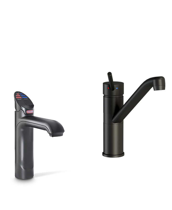 Zenith HydroTap Classic 4 in 1 Boiling, Chilled, Filtered water plus Hot and Cold washing up water from two separate taps. The system features a single under bench command centre including full colour interactive touch screen display with pin code protection and customisable settings including 2 boiling water safety modes, 3 energy saving modes including ON/OFF timers and sensor activated 'sleep when it's dark', 'Quiet' mode with automated intelligent fan speed adjustment, antimicrobial protection impregnated into key water paths for enhanced hygiene, 100% water efficient air cooled technology, and 0.2 micron water filtration. Easy to install integrated ventilation tray included.