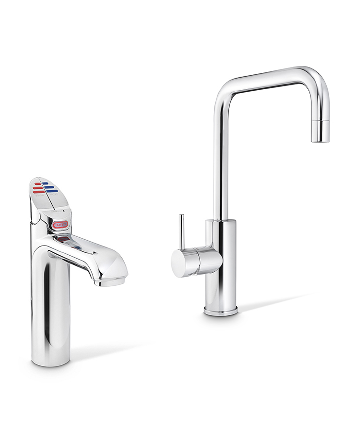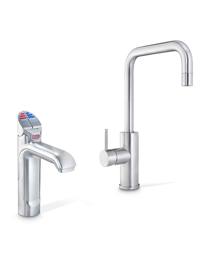 Zenith HydroTap Classic 4 in 1 Boiling, Chilled Filtered water plus Hot and Cold washing up water from two separate taps. The system features a single under bench command centre including full colour interactive touch screen display with pin code protection and customisable settings including 2 boiling water safety modes, 3 energy saving modes including ON/OFF timers and sensor activated 'sleep when it's dark', 'Quiet' mode with automated intelligent fan speed adjustment, antimicrobial protection impregnated into key water paths for enhanced hygiene, 100% water efficient air cooled technology, and 0.2 micron water filtration. Easy to install integrated ventilation tray included.